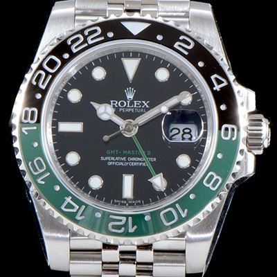 2018년에 선보인 GMT-마스터II GMT-MasterII는 오이스터스틸Oystersteel 소재로 제작되었습니다.이 버전은 오이스터스틸 소재의 5열링크 쥬빌리Jubilee 브레슬릿을 갖추고 있습니다.쥬빌리 브레슬릿,오이스터스틸,블랙와 그린 세라믹 소재의 투톤 세라크롬Cerachrom 인서트가 처음으로 모두 함께 GMT-마스터II에 적용되었습니다. |