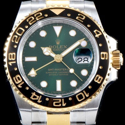 Rolex GMT-MasterII Oyster, flat three-piece links Black Ceramic Bezel Green Sun Dust Dial Oyster Bracelet SWISS ETA 2Automatic Movement