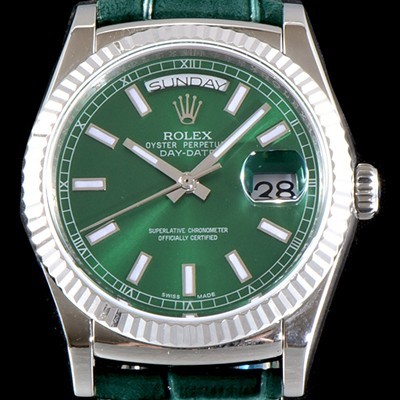 Rolex Oyster Perpetual Day Date Green Sun Dust Dial Dial Chronometer Fluted Bezel Automatic Movement