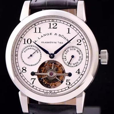 • 미러급 아랑게운트죄네 남성용 터보그래프 "푸르 르 메리트" 시리즈 블랙 다이얼 투어빌론 무브먼트 LAN4244 Ⅳ