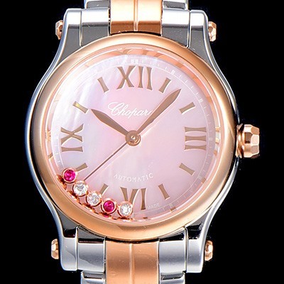 - 핑크 마더 오브 펄 다이얼,로즈골드 톤 로마 숫자&핸즈 - 미니 쥬얼들이 움직이는 모습을 볼수있는