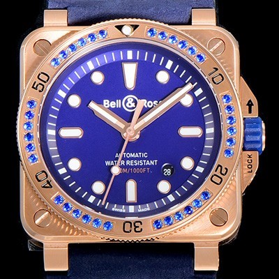Bell & Ross BR 03-92 Diver 18K Rose Gold 42mm Mens Automatic Blue Dial