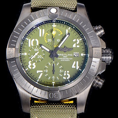 Breitling Super Avenger Night Mission 45mm Chronograph Mens Green Dial DLC-Coating Titanium Automatic Movement
