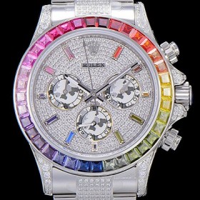 • 미러급 로렉스남성용 데이토나 오이스터 라인보우 와치 보석/큐빅 세팅 4130타입 무브튜닝 40mm 블랙 다이얼 ROL27036 Ⅳ