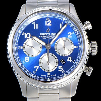 • 미러급 브라이틀링 남성용 네비타이머 에비에이터 8 오토매틱 크로노그래프 ETA7750-2 타입 43미리 메탈줄 블루다이얼 BRE75564 Ⅳ