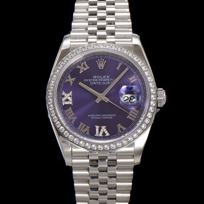 Rolex Men's Dayjust Roman Index 36mm Jewels/Cubic Automatic Cal.3235 Movement Purple Dial
