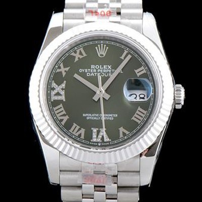 Rolex NEW Oyster Steel DATE-JUST Green Sun Dust Dial Bracelet Automatic Movement