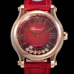 미러급 쇼파드 여성용 해피 스포츠 오토매틱 ETA2892-2 타입 36mm 래이디스/금장시계 18K로즈골드 가죽줄 래드다이얼 cho01624 Ⅳ