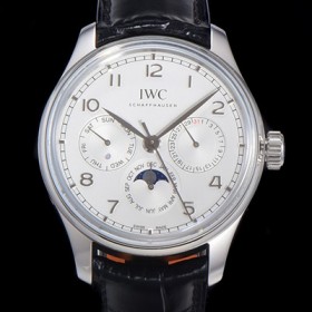 미러급 아이더블유씨 남성용 포르투기즈 퍼페추얼 캘린더 문페이즈 오토매틱 42mm Cal.82650 타입 가죽줄 화이트다이얼 iwc42081 Ⅳ