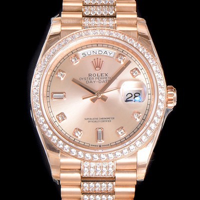 Rolex Day-Date Automatic Cal.3235 TYPE 36mm Mens 18K All Rose Gold Diamond Blue Dial