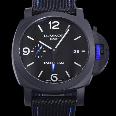 파네라이 루미노르 GMT 퓨전 오토매틱P.9010타입 44미리 남성용시계 세라믹케이스 나토천/나일론밴드 블랙다이얼pan033708394