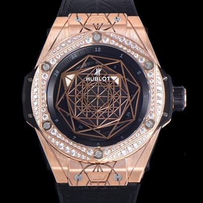 • 미러급 휴블렛 남성용 빅뱅 유니코 45mm 오토매틱 HUB1280 타입 18K 로즈골드/다이아몬드 풀케이스 러버줄 스켈래톤 다이얼  hub3259 Ⅳ