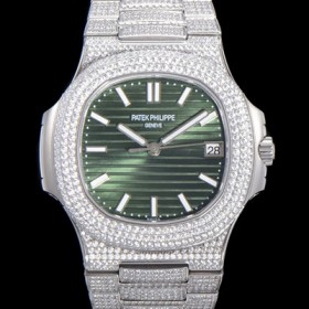 Patek Philippe Men's Nautilus Gemstone/Cubic Setting Automatic Cal.324 S C Type 40mm Green Dial