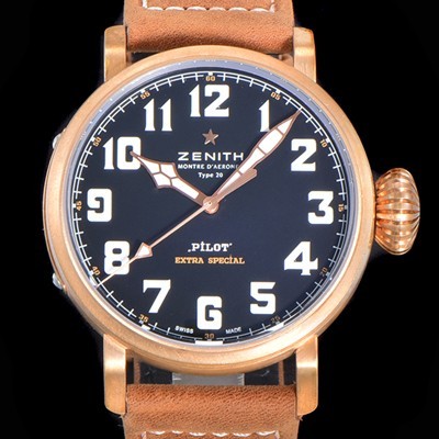 Zenith Pilot Type 20 Adventure Automatic 9015 Movement 45mm Men's Watch Bronze case black Dial