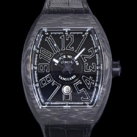 Frank Muller Men's Vanguard 2824 Movement Automatic 44mm Carbon Case Rubber Band Black Dial