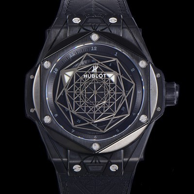 • 미러급 휴블렛 남성용 빅뱅 쌍 블루 티타늄 PVD 오토매틱 HUB1213타입 45미리 가죽/우레탄 믹스밴드 블랙다이얼 hub38783 Ⅳ
