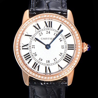 미러급 까르띠에 여성용 롱드 더 솔로 WR000351  쿼츠 므브먼트 29미리 로즈골드 큐빅베젤 악어가죽줄 화이트다이얼 CAR11547 Ⅳ