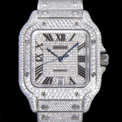 • 미러급 까르띠에 남성용 산토스 쥬얼 다이아몬드 셋팅 베젤 40mm 큐빅/보석 다이얼 오토매틱 무브먼트 CAR40192 Ⅳ