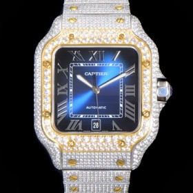 • 미러급 까르띠에 남성용 산토스 쥬얼 다이아몬드 셋팅 베젤 40mm 네이비 다이얼 오토매틱 무브먼트 CAR46583 Ⅳ