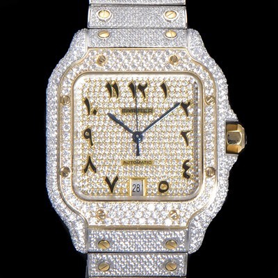 • 미러급 까르띠에 남성용 산토스 쥬얼 다이아몬드 셋팅 베젤 40mm 큐빅/보석 다이얼 오토매틱 무브먼트 CAR40206 Ⅳ