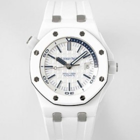 • 미러급 오데마피게 남성용 로얄오크 오프쇼어 15707CB.OO.A010CA.01 오토매틱 Cal.3120 타입 화이트 세라믹소재  42mm 우레탄줄 민트 화이트다이얼 aud5219 Ⅳ