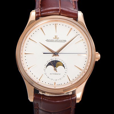 • 미러급 예거 르꿀르뜨 남성용 마스터 울트라 씬 문페이즈 오토매틱 925타입 18K로즈골드 39mm 가죽줄 화이트 다이얼 jag5191 Ⅳ