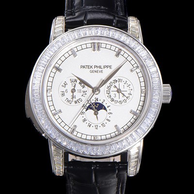 • 미러급 파텍필립 남성용 Ref.5073P 그랜드 컴플리케이션 문페이즈 오토매틱 다이아몬드셋팅 42mm 가죽줄 화이트다이얼 pat2195 Ⅳ