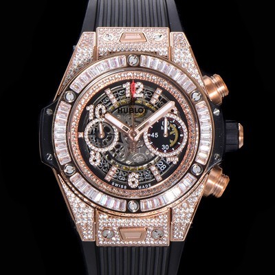 • 미러급 휴블렛 남성용 빅뱅 유니코 45mm 오토매틱 HUB1280 타입 18K 로즈골드/다이아몬드 풀케이스 러버줄 스켈래톤 다이얼  hub3259 Ⅳ