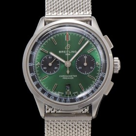 • 미러급 브라이틀링 남성용 프리미에르 AB0118A11L1X1 크로노그래프 7750 타입 오토매틱 42mm 메쉬밴드 그린 다이얼 bre6014 Ⅳ