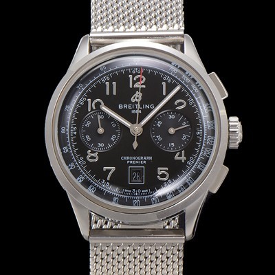 Breitling Men's Premier Chronograph 7750 Type Automatic 42mm Mesh Band black Dial