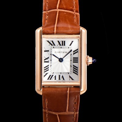 Cartier Women's New Tank Silver Dial 29mm Rose Gold Crocodile Leather Quartz Movement