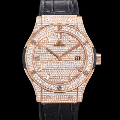• 미러급 휴블렛 남성용 클래식 퓨전 565.OX.9010.LR.1704 다이아몬드 셋팅 큐빅/보석 다이얼 18K로즈골드 42미리 오토매틱 2892 타입 가죽/우레탄 믹스밴드 hub2127 Ⅳ