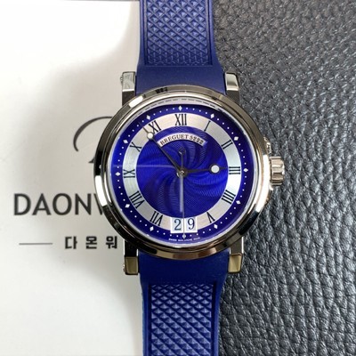 - 네이비&화이트 물결무늬 다이얼,로마 인덱스,달 모양의 "문" 팁 핸즈 - 6시방향 빅사이즈 날짜창 디스플레이 퀵체인지(Quick Change) 가능 |