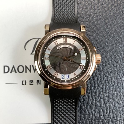 - 브라운&화이트 물결무늬 다이얼,로마 인덱스,달 모양의 "문" 팁 핸즈 - 6시방향 빅사이즈 날짜창 디스플레이 퀵체인지(Quick Change) 가능 |