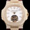 미러급 파텍필립 남성용 노틸러스 뚜르비옹 18K 옐로우 골드 최상급쥬얼 다이아몬드 풀 세팅 케이스 화이트 텍스쳐 다이얼 아시안 투어빌론 탑재 PAT0100 Ⅳ