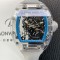 미러급 리차드밀레 남성용 RM055 트랜스파랜트 50mm 미네랄 크리스탈 기계식 수동형 무브먼트 블루 스켈레톤 다이얼 ric0328 Ⅳ